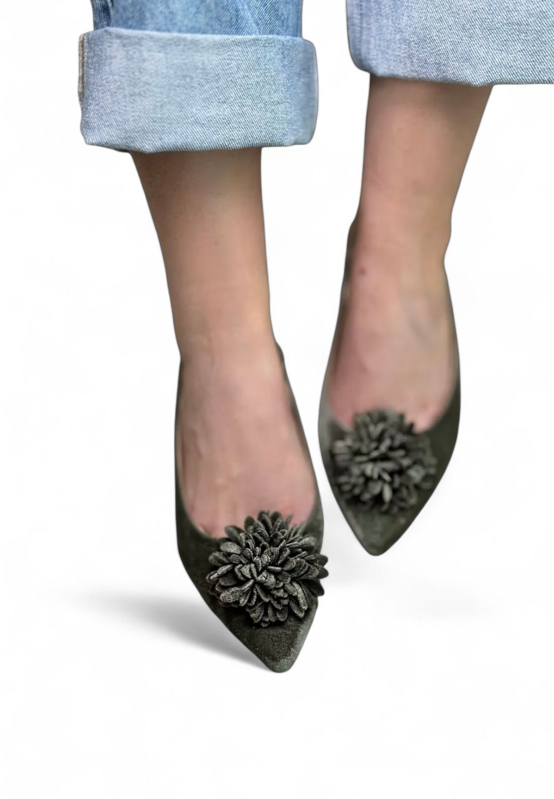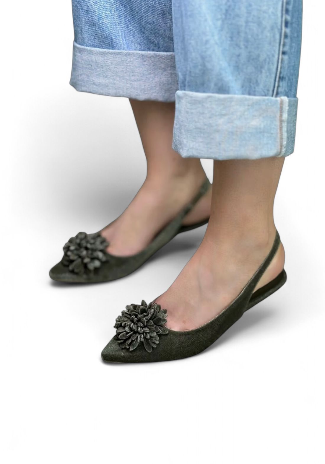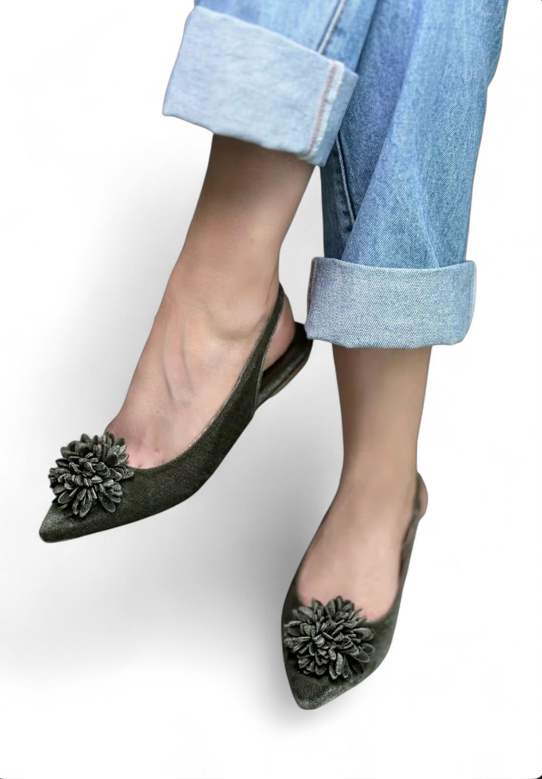 Apresentamos a você a Sapatilha BIANCA: Um modelo Slingback adorável com detalhes incríveis que trazem elegância e modernidade. É um modelo perfeito para o ano inteiro, em veludo macio na cor Verde Oliva, decorado com um belo e robusto pompom que garante um charme extra para todas as estações.