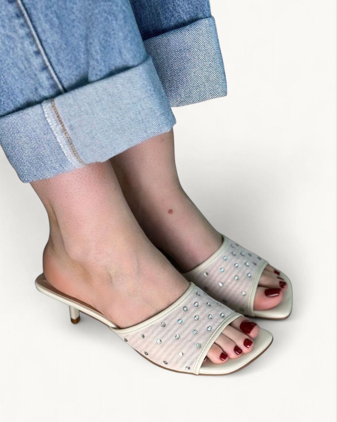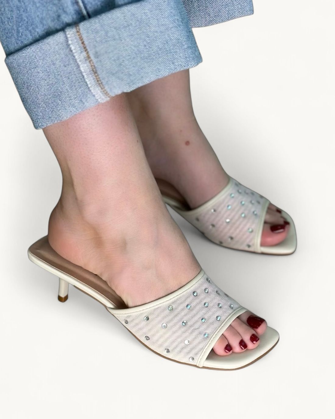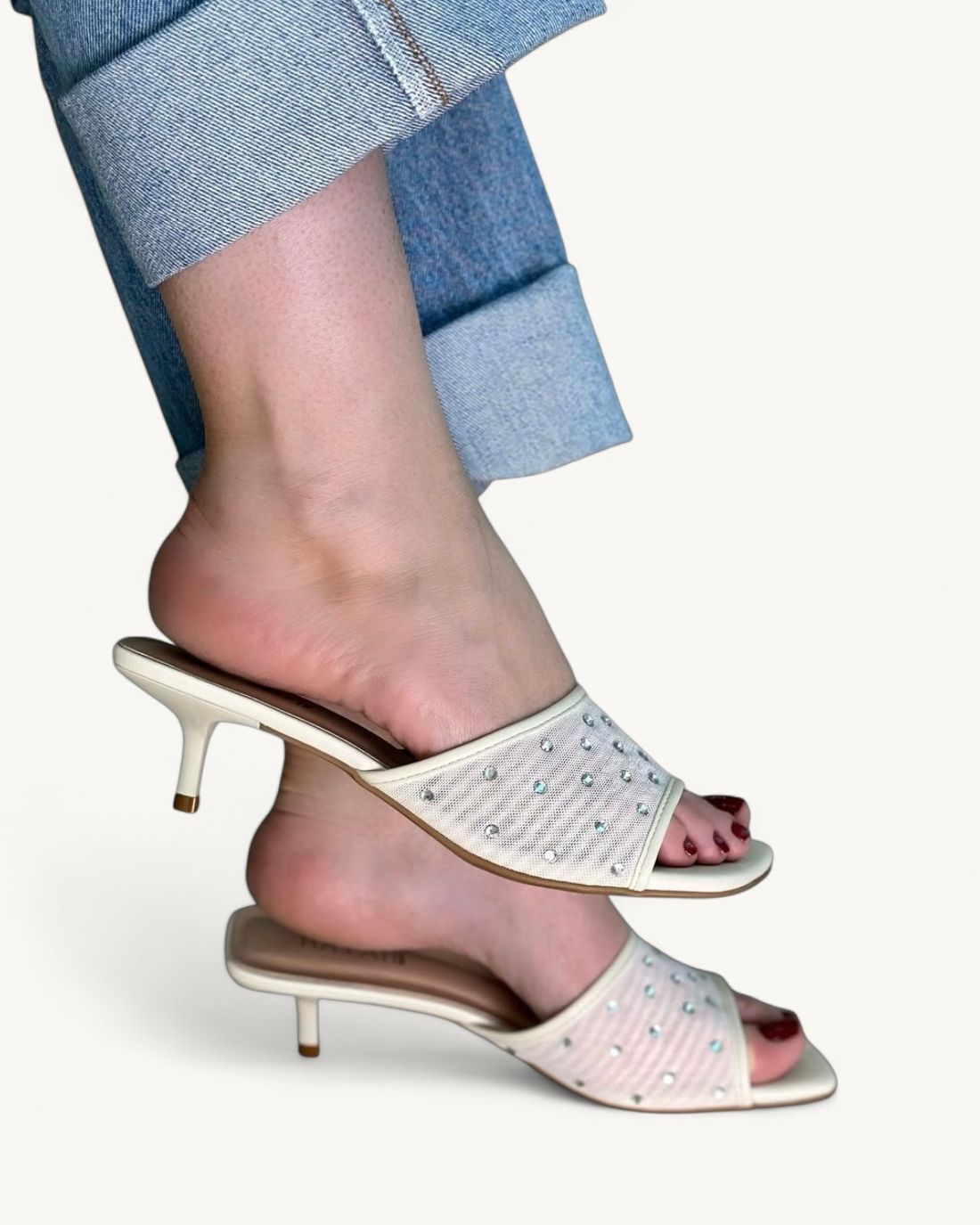 O Tamanco JANE é ideal para quem busca um calçado confortável e marcante. Ele é perfeito para compor looks despojados e cheios de atitude, sem perder a sofisticação ou para ocasiões casuais e momentos que pedem um toque fashionista - esse tamanco oferece uma mistura de conforto, originalidade e glamour para o seu dia a dia. O detalhe no cabedal que é todo em tela com aplicação de strass, deixam o Tamanco JANE ainda mais charmoso e delicado!